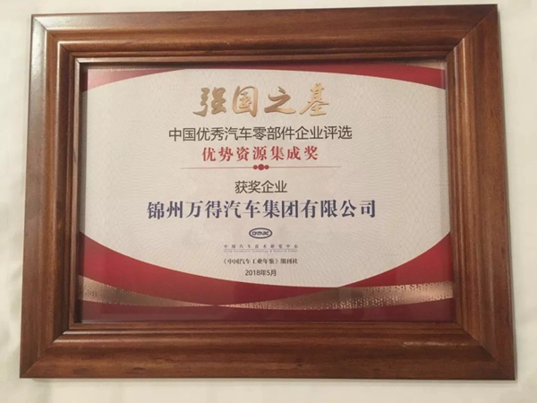 including Wonder Group were selected from 55000 domestic auto parts enterprises.