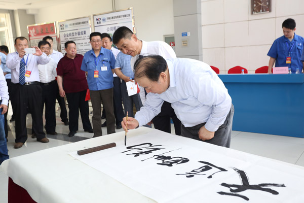馬純濟(jì)書記與李松巖總經(jīng)理為濟(jì)南沃德六十周年紀(jì)念寶鼎揭幕(寶鼎由萬得集團(tuán)贈送,集團(tuán)創(chuàng)始人趙清潔親筆題字:“業(yè)立沃德愛回家”)