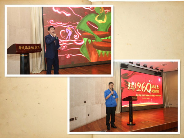 沈陽沃德總經(jīng)理于繼平(圖左)用歌聲祝福、濟(jì)南沃德勞模代表(圖右)發(fā)言