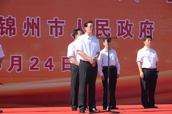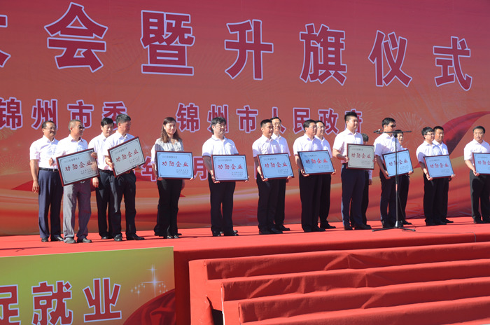 錦州市市委書記王明玉宣布為50戶功勛企業(yè)升旗