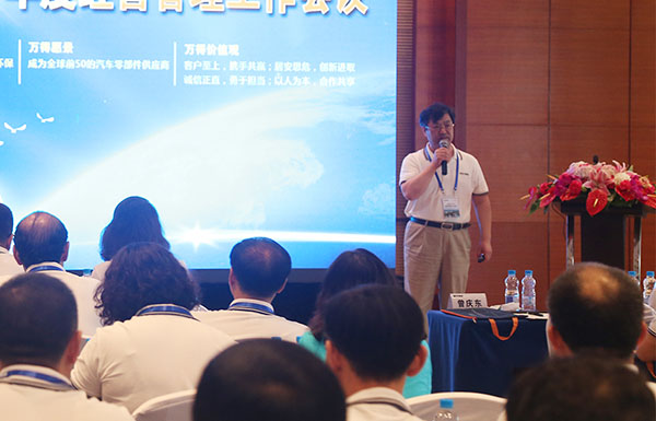 漢拿系統(tǒng)總經(jīng)理劉勇東、錦恒系統(tǒng)總經(jīng)理趙成明、沃德系統(tǒng)總經(jīng)理李松巖、萬(wàn)友公司總經(jīng)理任佳平發(fā)表年度報(bào)告