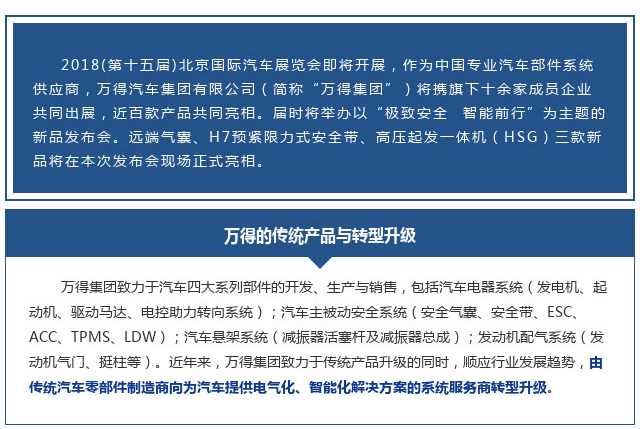 “極致安全 智能前行”-萬得集團三款自主研發(fā)新品將亮相2018北京車展