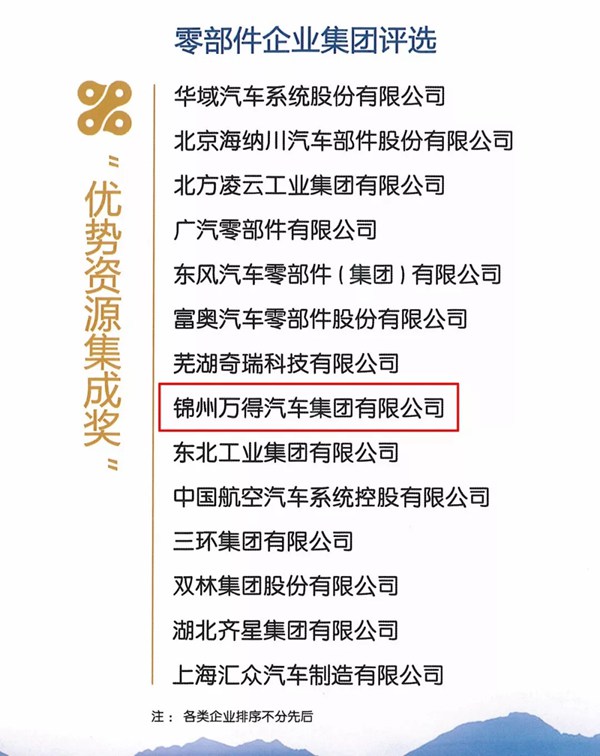 5月30日,《中國(guó)汽車零部件產(chǎn)業(yè)發(fā)展研究》成果發(fā)布會(huì)暨“強(qiáng)國(guó)之基—中國(guó)優(yōu)秀汽車零部件企業(yè)”頒獎(jiǎng)典禮在西安舉行,會(huì)上根據(jù)國(guó)內(nèi)汽車零部件行業(yè)企業(yè)發(fā)展特點(diǎn)將8個(gè)細(xì)分產(chǎn)業(yè)類型劃分為10個(gè)獎(jiǎng)項(xiàng),揭曉了汽車零部件產(chǎn)業(yè)優(yōu)秀企業(yè)名單。萬得集團(tuán)作為國(guó)內(nèi)汽車零部件一線品牌,融合優(yōu)勢(shì)資源,突破傳統(tǒng)細(xì)分產(chǎn)業(yè)界限,拓展上下游全產(chǎn)業(yè)鏈條,全面開展零部件平臺(tái)化建設(shè),促進(jìn)零部件產(chǎn)業(yè)持續(xù)縱深發(fā)展,一舉榮獲汽車零部件“優(yōu)勢(shì)資源集成獎(jiǎng)”。