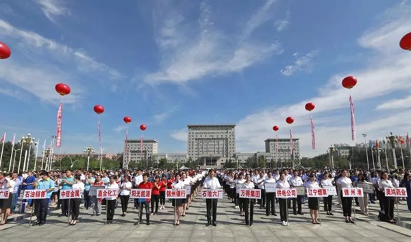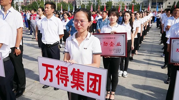 8月17日,市府廣場彩球高懸、彩旗飄揚,“深入實施工業(yè)強市戰(zhàn)略、促進錦州振興發(fā)展”的標語迎風招展!2016-2017年度錦州市功勛企業(yè)表彰大會暨升旗儀式”在這里隆重舉行,全市共有50戶骨干企業(yè)受表彰。萬得集團以年營業(yè)收入、交納稅金、社會貢獻等綜合指標位列前三甲的業(yè)績名列其中,這是繼2015年度獲獎后第二次獲此殊榮。集團董事長兼總裁曾慶東代表集團從市領導手中接過“功勛企業(yè)”牌匾。